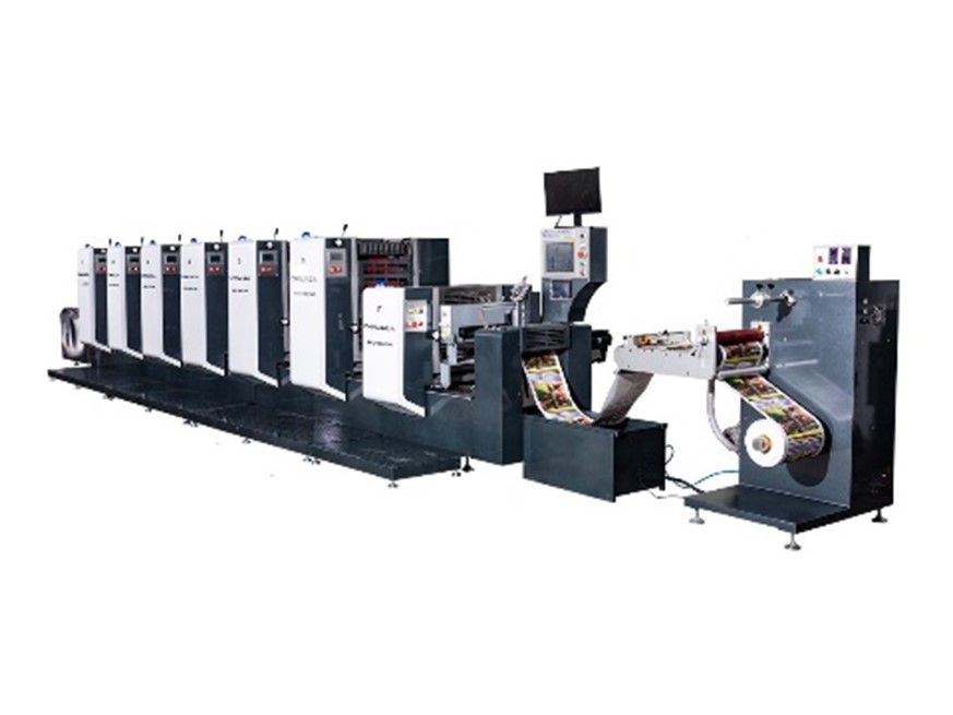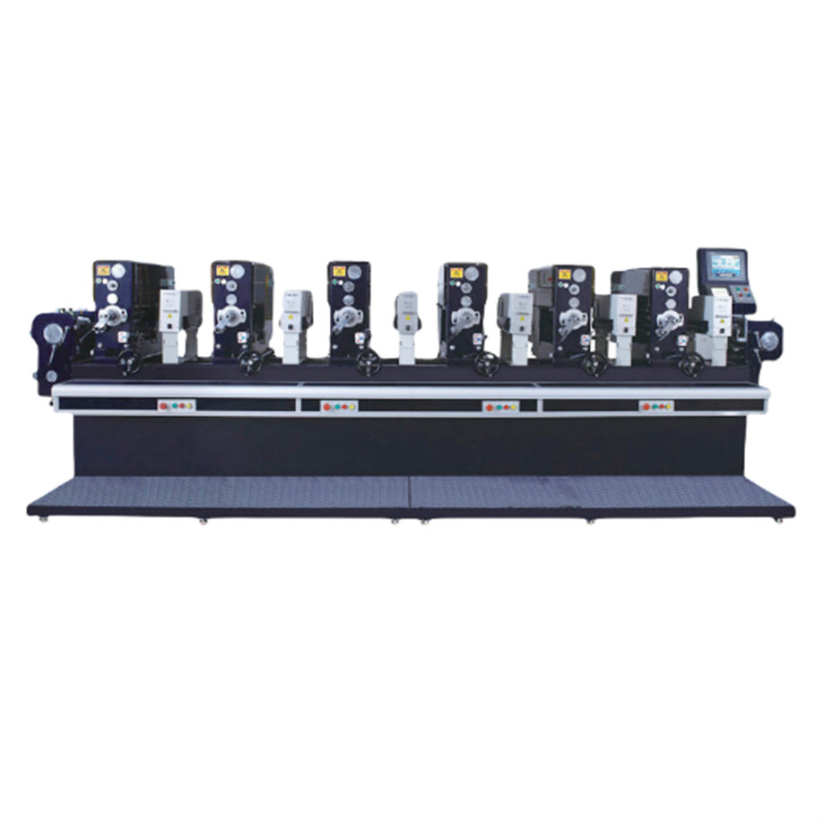 This model features a compact structure and flexible operation, making it particularly suitable for small to medium runs of self-adhesive label printing. With a maximum web width of 350 mm and a production speed of up to 20,000 sheets per hour, it accommodates material thicknesses ranging from 0.1 to 0.3 mm and supports a maximum unwinding diameter of 700 mm. The press offers both full rotary and intermittent printing modes, adapting to diverse business needs. Standard equipment includes 12 plate cylinders, UV rubber rollers, and an automatic web guide tension system, enabling high-quality printing and rapid job changeovers.