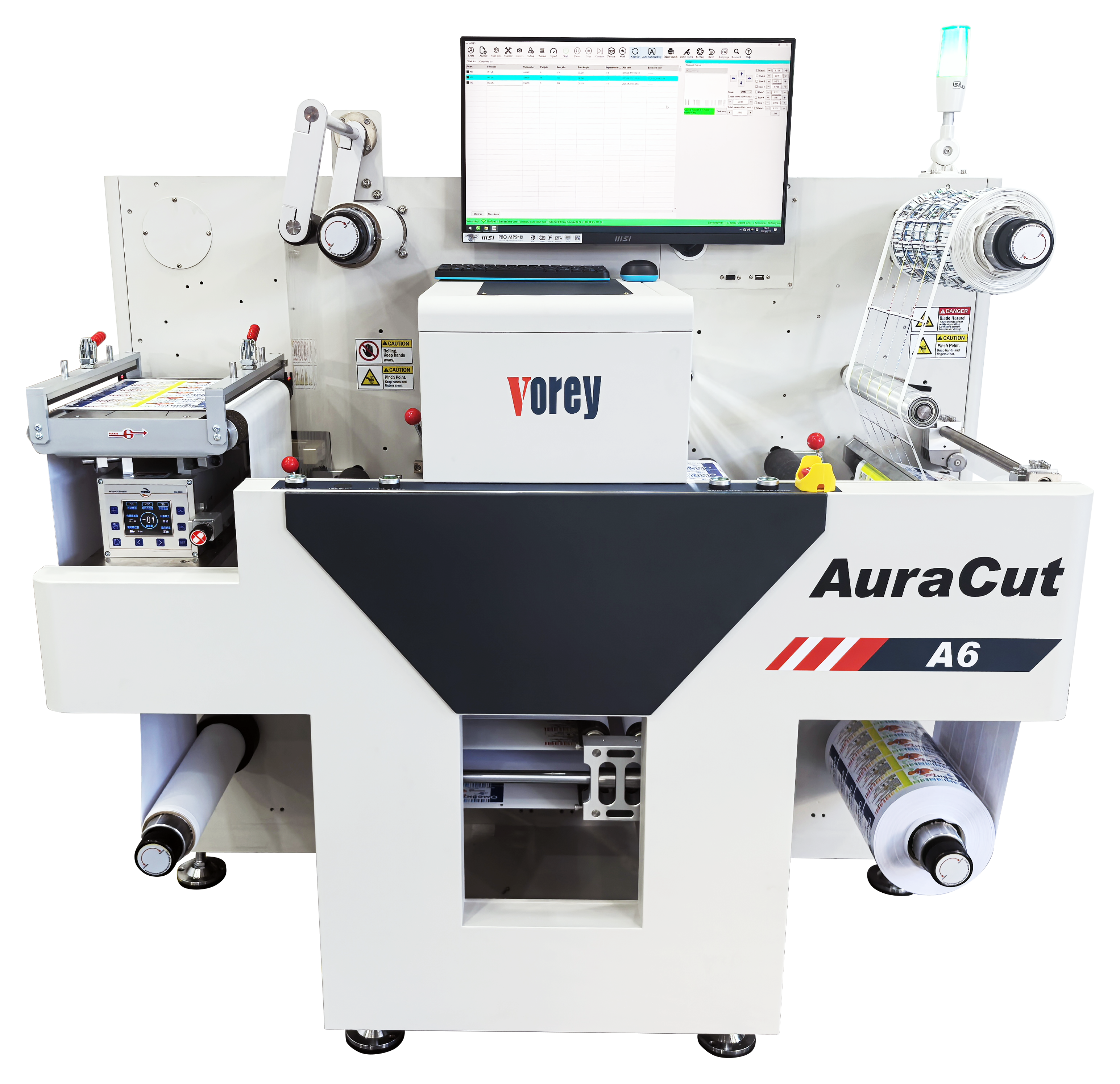 AuraCut A6 is an intelligent high speed label die cutting machine with 6 cutting blades that achieves fast order changing in 10 seconds. It also reaches the cutting speed of 11m/m. Unique servo motor control the blade depth and pressure, Operator don’t need stay with machine during machine running.